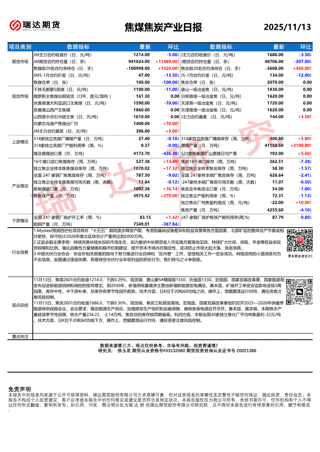 瑞达期货-焦煤市场周报:宏观稳产&供应回升,焦煤期价短期偏弱-251114