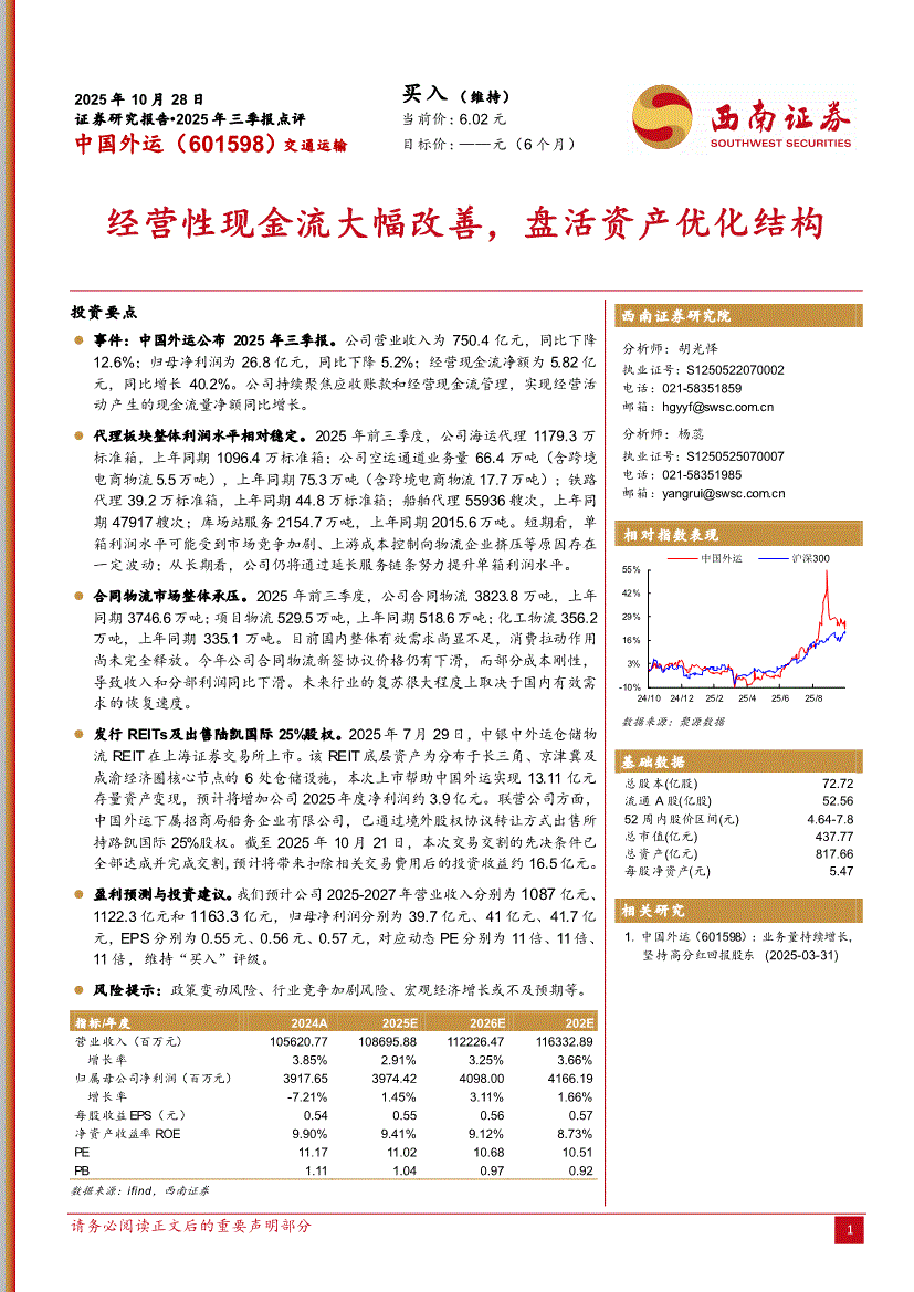 中国外运:西南证券-中国外运-601598-经营性现金流大幅改善,盘活资产优化结构-251028
