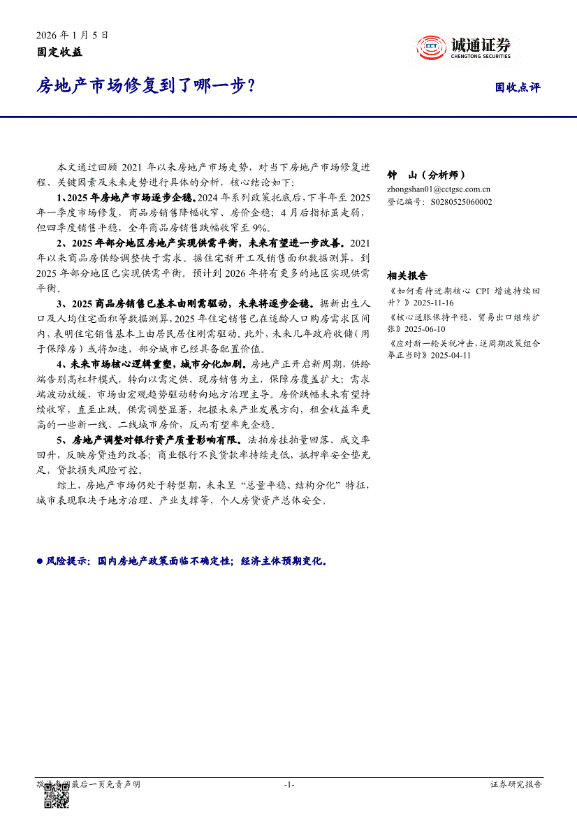 诚通证券-固收点评:房地产市场修复到了哪一步?-260105