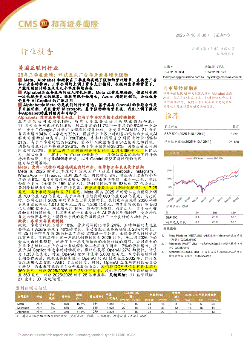 互联网行业:招商证券(香港)-美国互联网行业25年三季度业绩:科技巨头广告与云业务增长强劲-251030