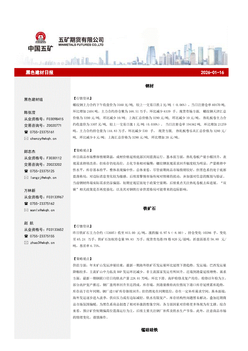 五矿期货-钢材周报:需求边际改善,延续底部震荡-260117