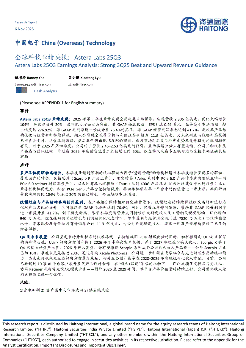电子行业:海通国际-中国电子行业全球科技业绩快报:AsteraLabs25Q3-251106