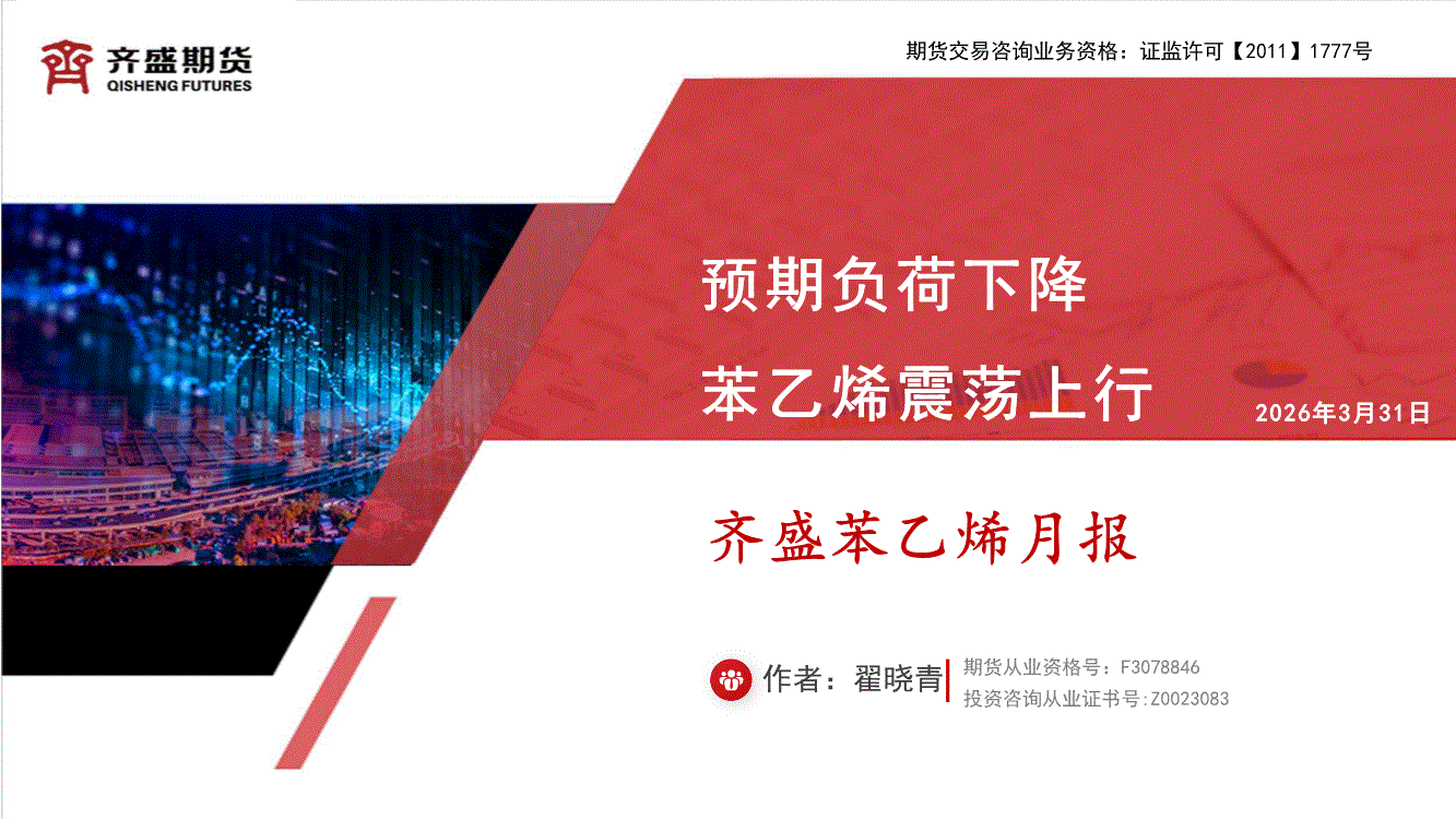 齐盛期货-苯乙烯月报:预期负荷下降,苯乙烯震荡上行-260331