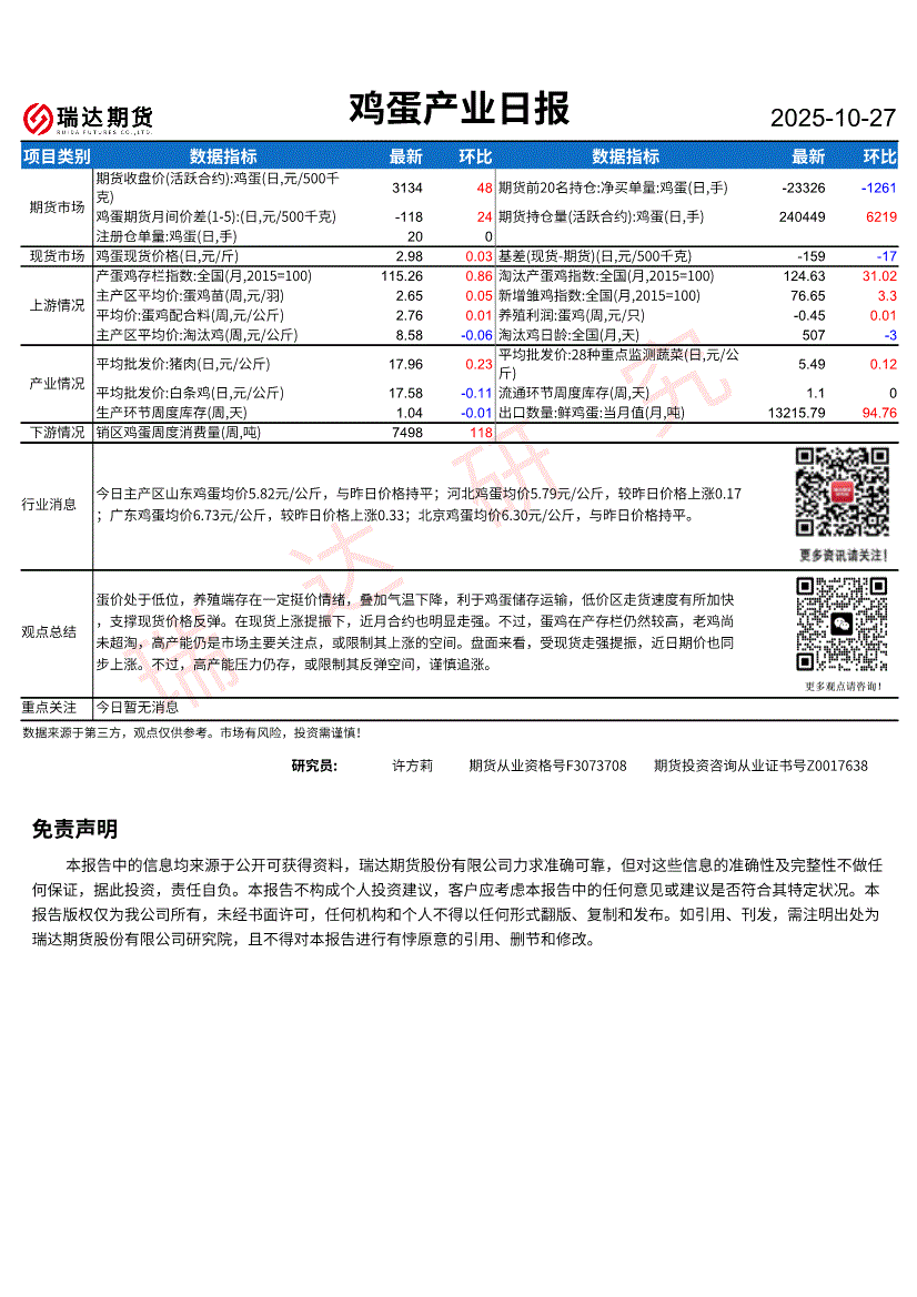 瑞达期货-鸡蛋市场周报:现货价格止跌回涨,提振期价同步反弹-251024