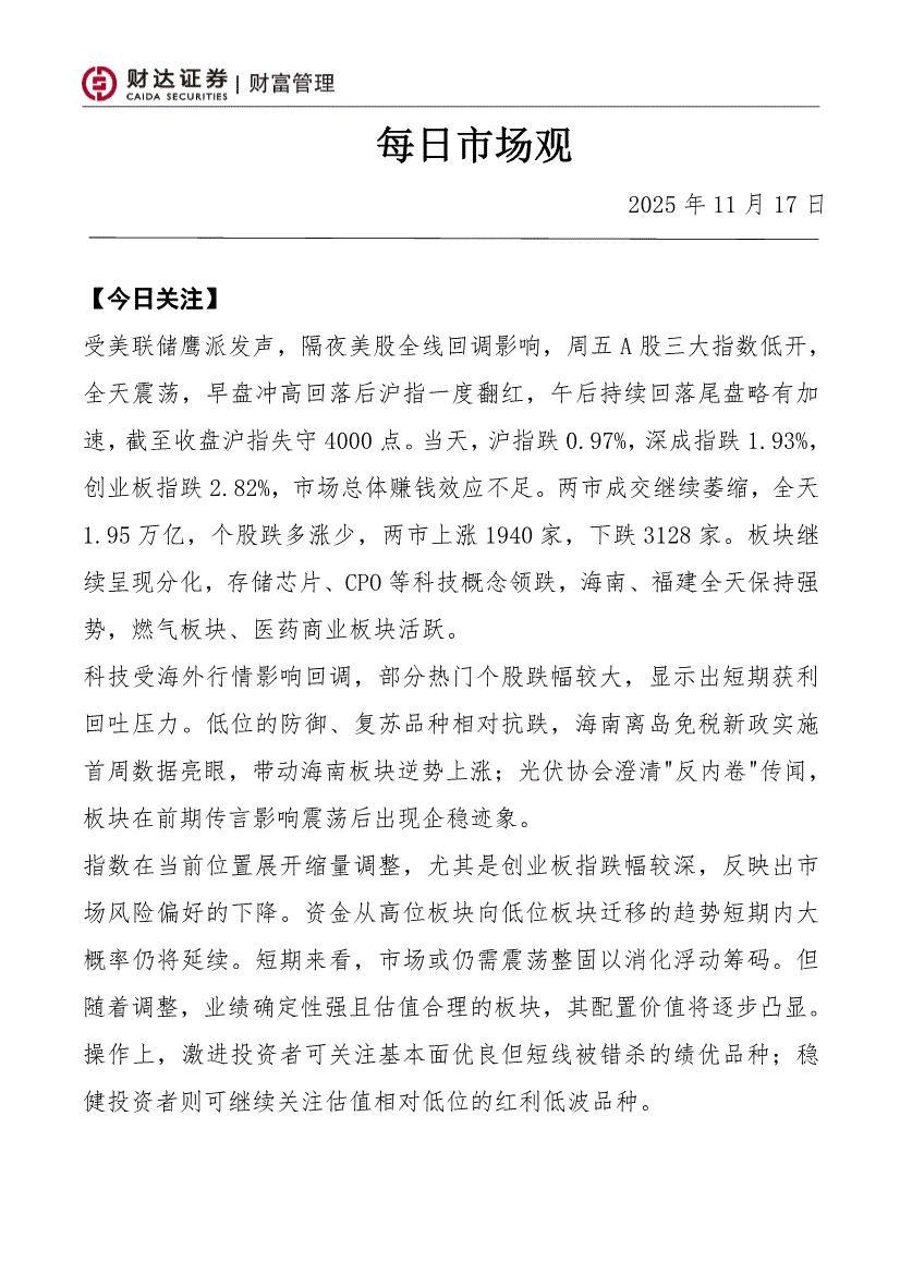 德邦证券-策略点评:震荡延续,指数分化-251112
