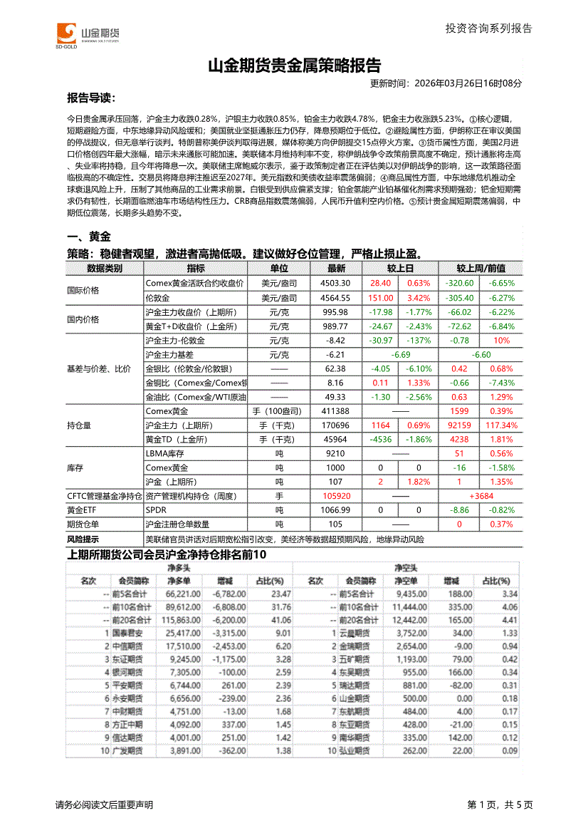 山金期货-贵金属策略报告-260326