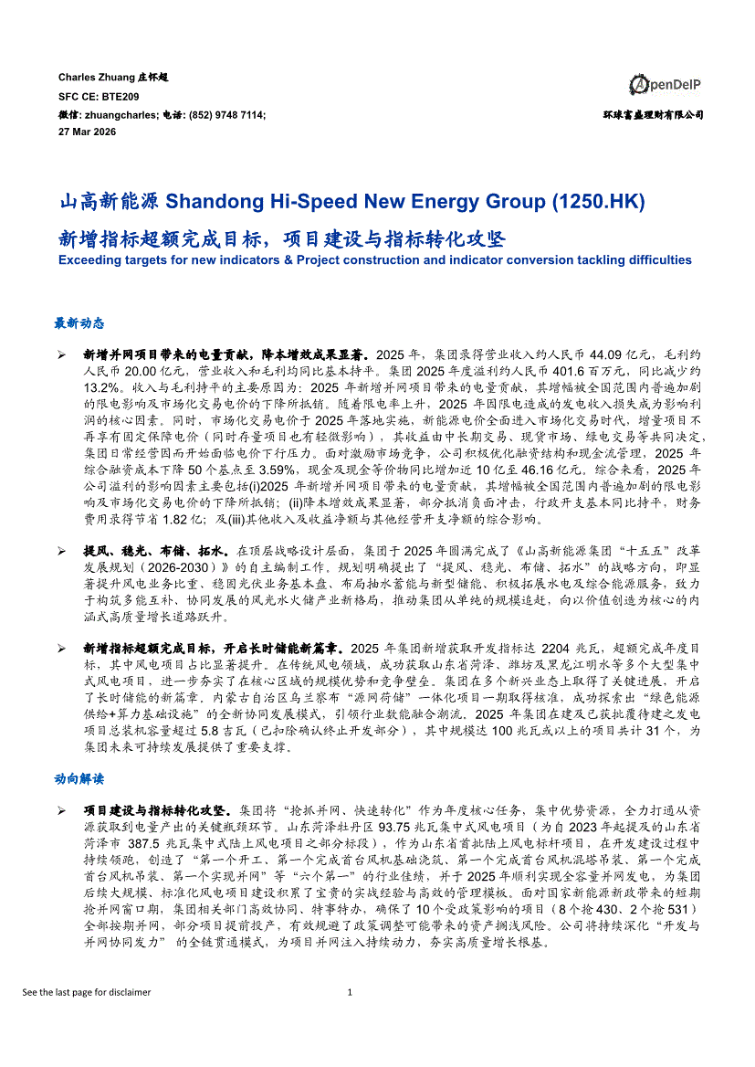 山高新能源:环球富盛-山高新能源-1250.HK-新增指标超额完成目标,项目建设与指标转化攻坚-260327