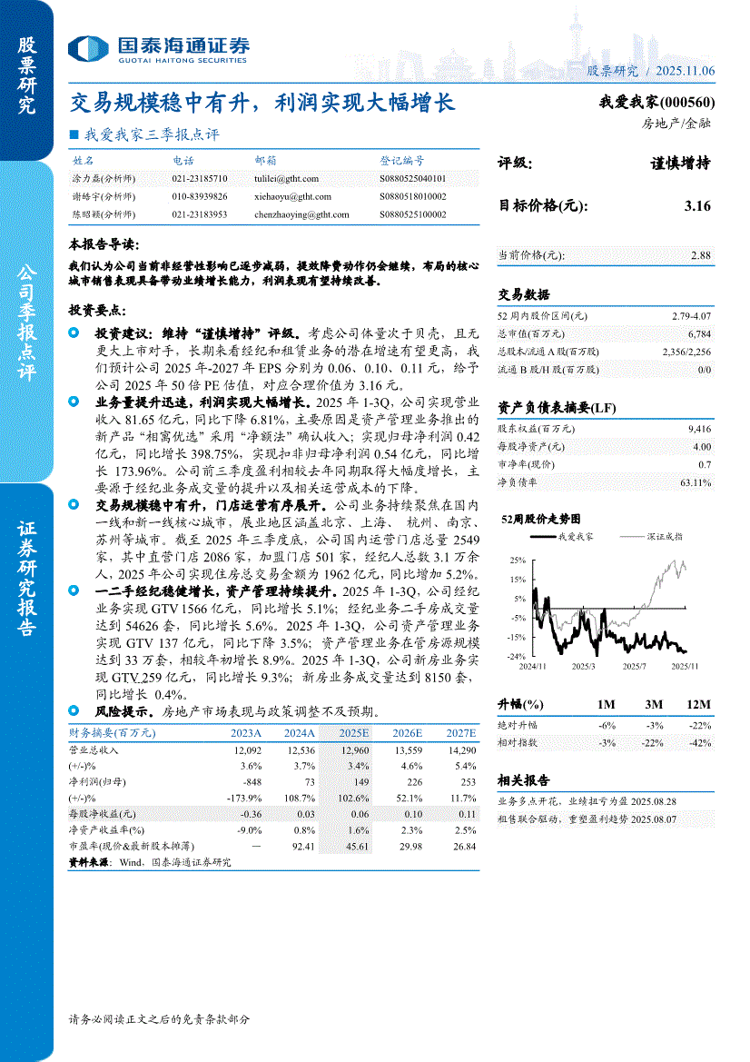 我爱我家:国泰海通证券-我爱我家-000560-三季报点评:交易规模稳中有升,利润实现大幅增长-251106