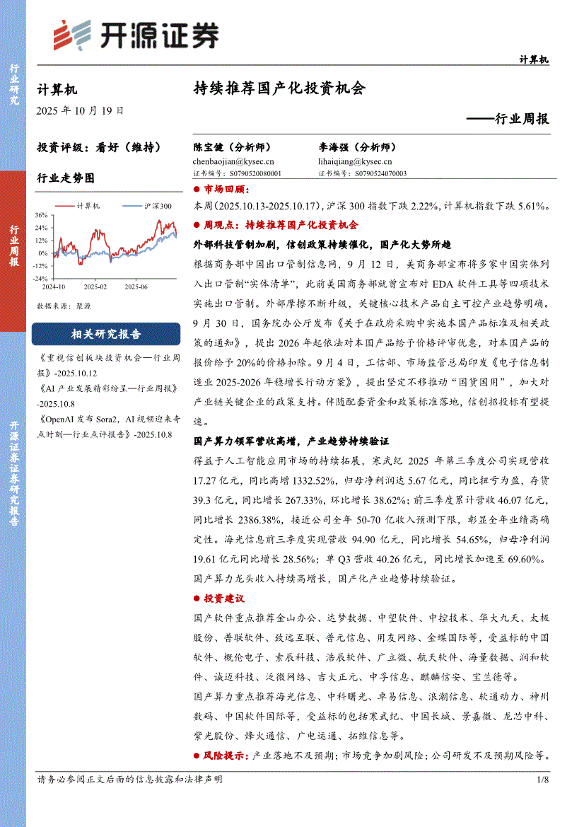 计算机行业:开源证券-计算机行业周报:持续推荐国产化投资机会-251019