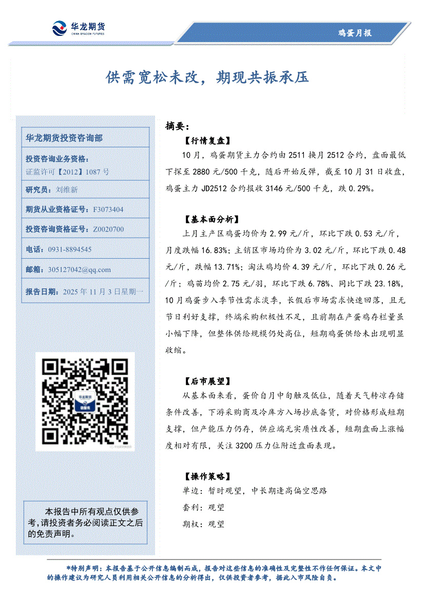 华龙期货-鸡蛋月报:供需宽松未改,期现共振承压-251103