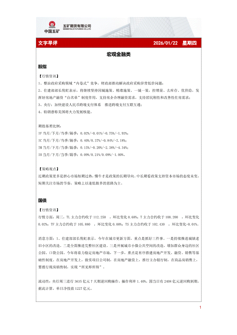 五矿期货-铜周报:贵金属新高,铜价震荡偏强-260124