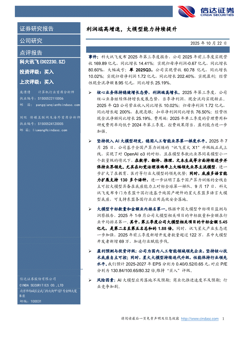 科大讯飞:信达证券-科大讯飞-002230-利润端高增速,大模型能力持续提升-251022