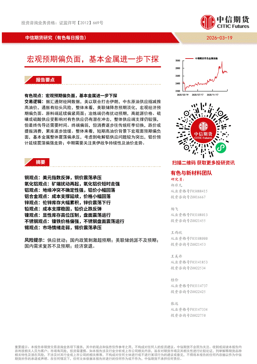 中信期货-有色每日报告:宏观预期偏负面,基本金属进一步下探-260319