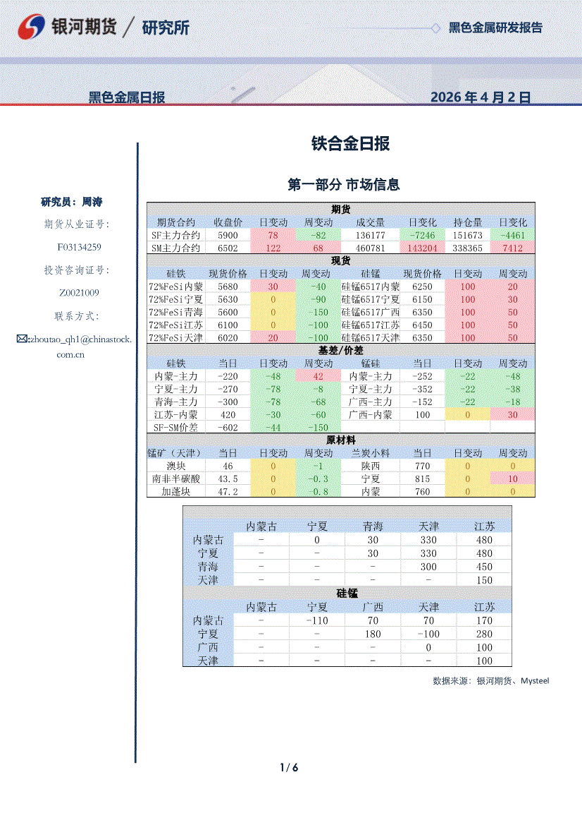 银河期货-铁合金日报-260401