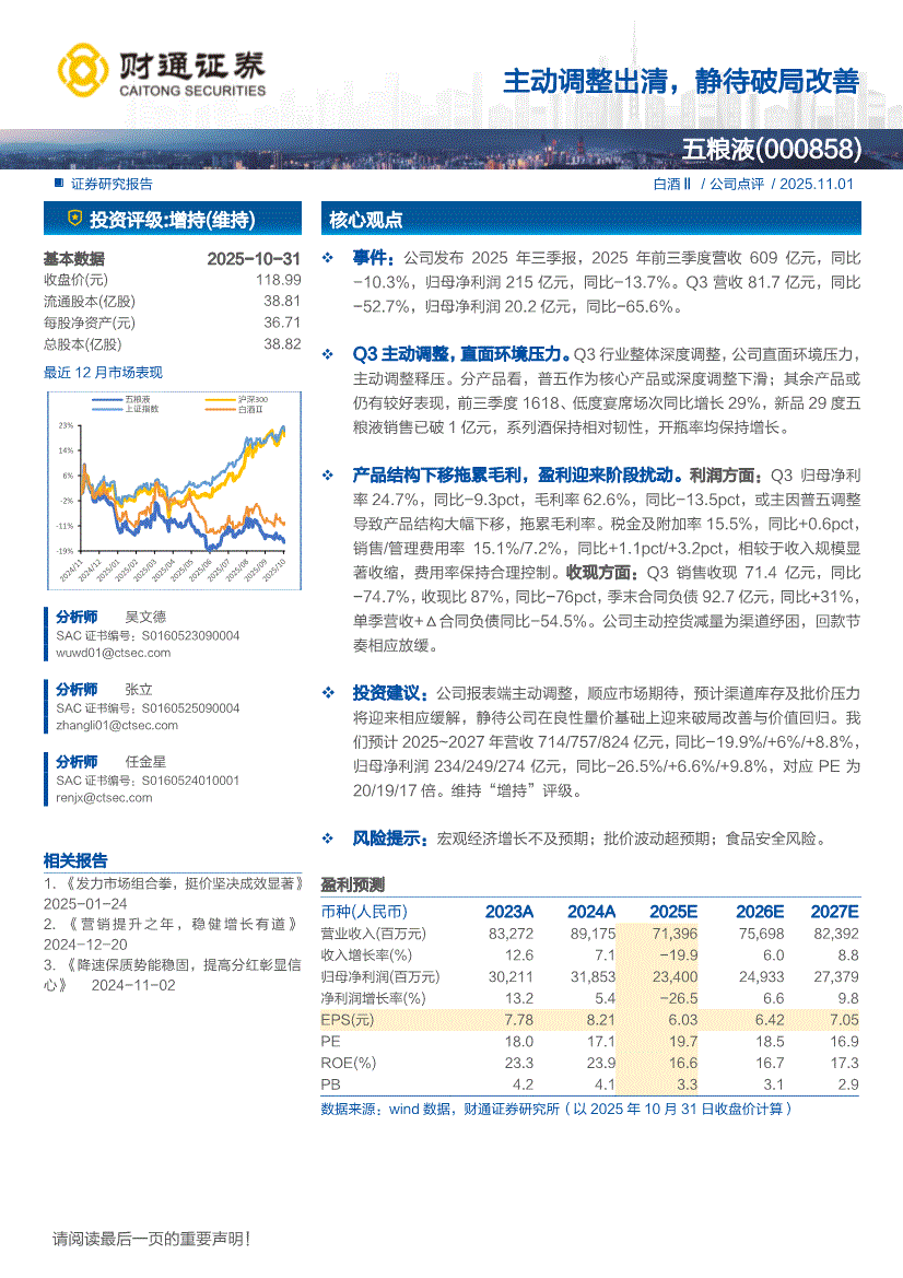 五粮液:财通证券-五粮液-000858-主动调整出清,静待破局改善-251101