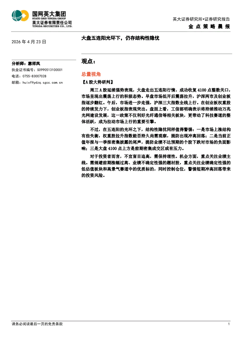 英大证券-金点策略晨报-260423
