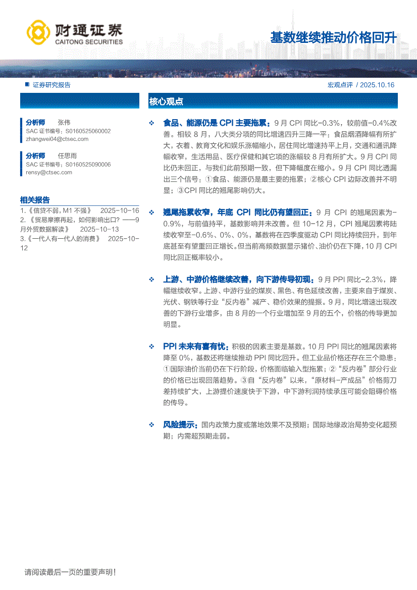 财通证券-宏观点评:基数继续推动价格回升-251016