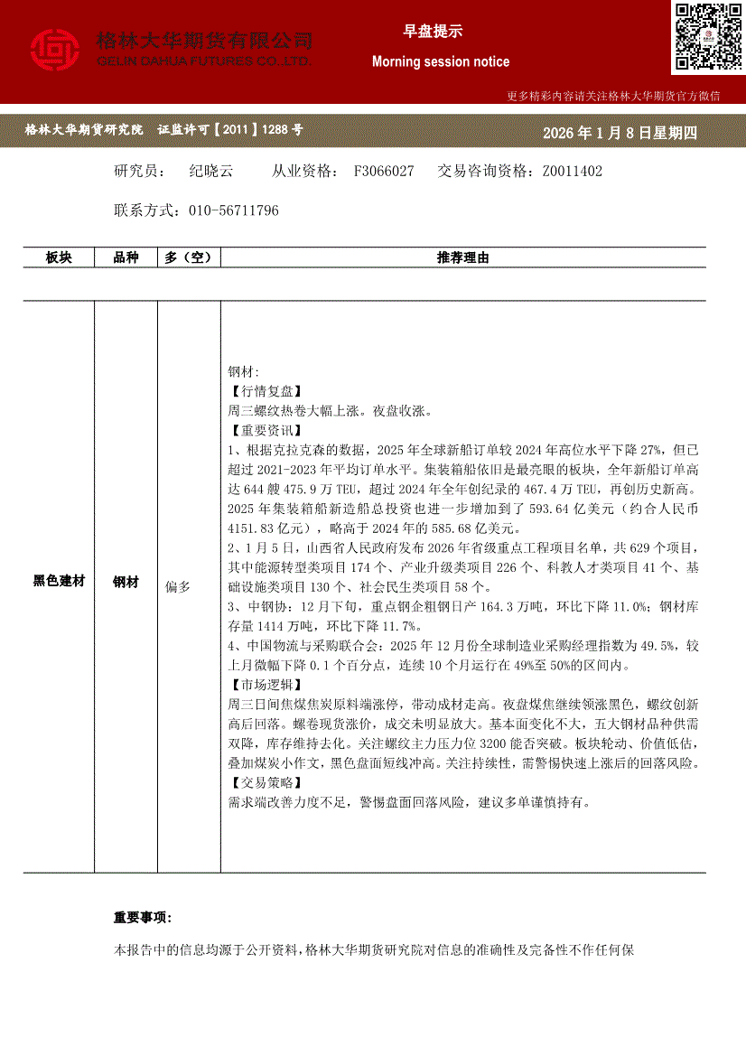 格林大华期货-早盘提示:焦煤、焦炭-251230