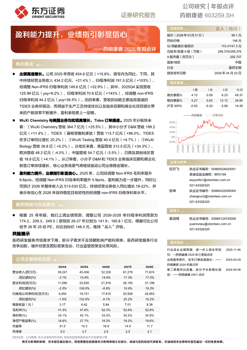 药明康德:东方证券-药明康德-603259-2025年报点评:盈利能力提升,业绩指引彰显信心-260402