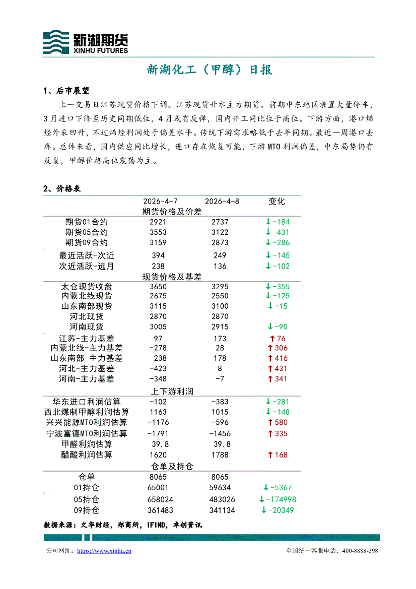 新湖期货-化工(甲醇)日报-260408