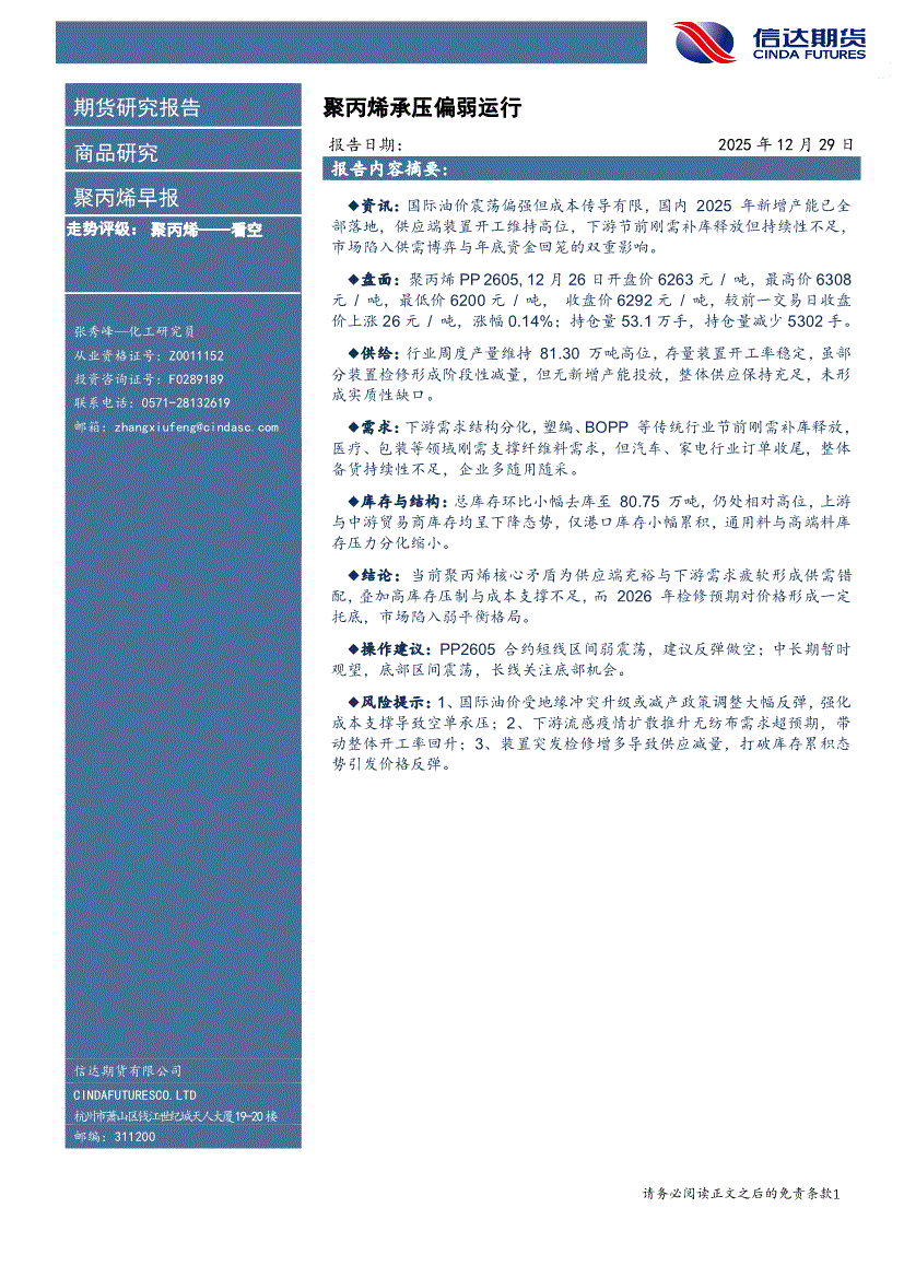 信达期货-聚丙烯早报:聚丙烯承压偏弱运行-251231