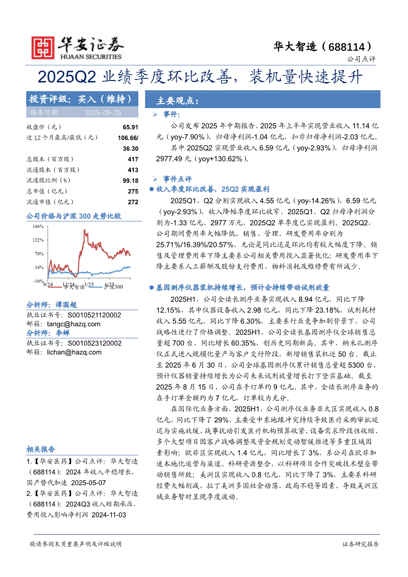 华大智造:华安证券-华大智造-688114-2025Q2业绩季度环比改善,装机量快速提升-250925