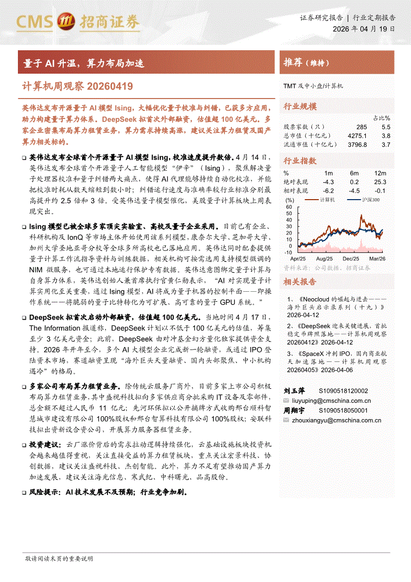 计算机行业:招商证券-计算机行业周观察:量子AI升温,算力布局加速-260419