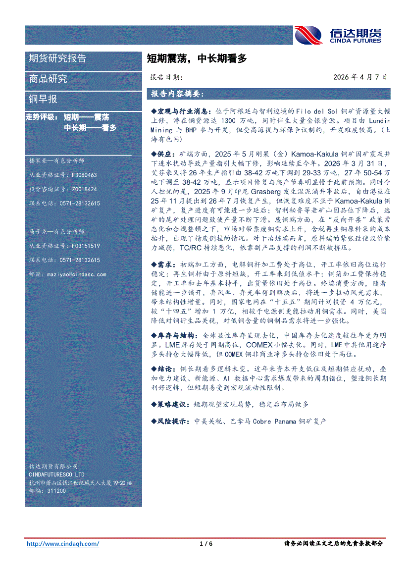信达期货-铜早报:短期震荡,中长期看多-260407