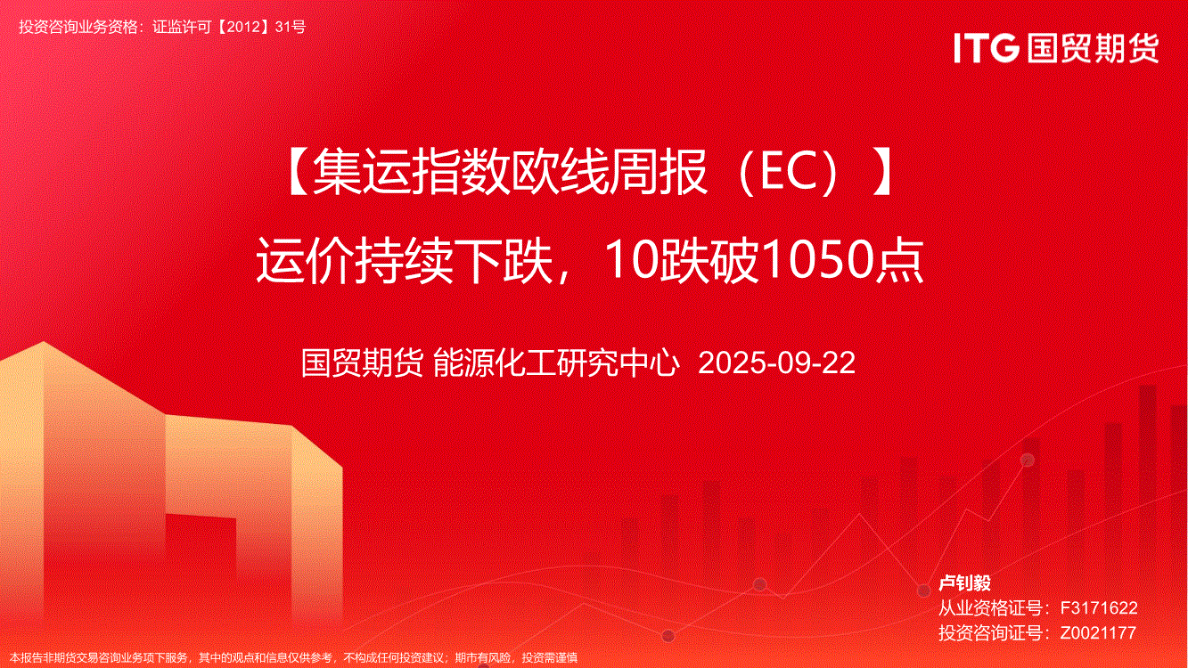 国贸期货-【集运指数欧线周报(EC)】运价持续下跌,10跌破1050点-250922