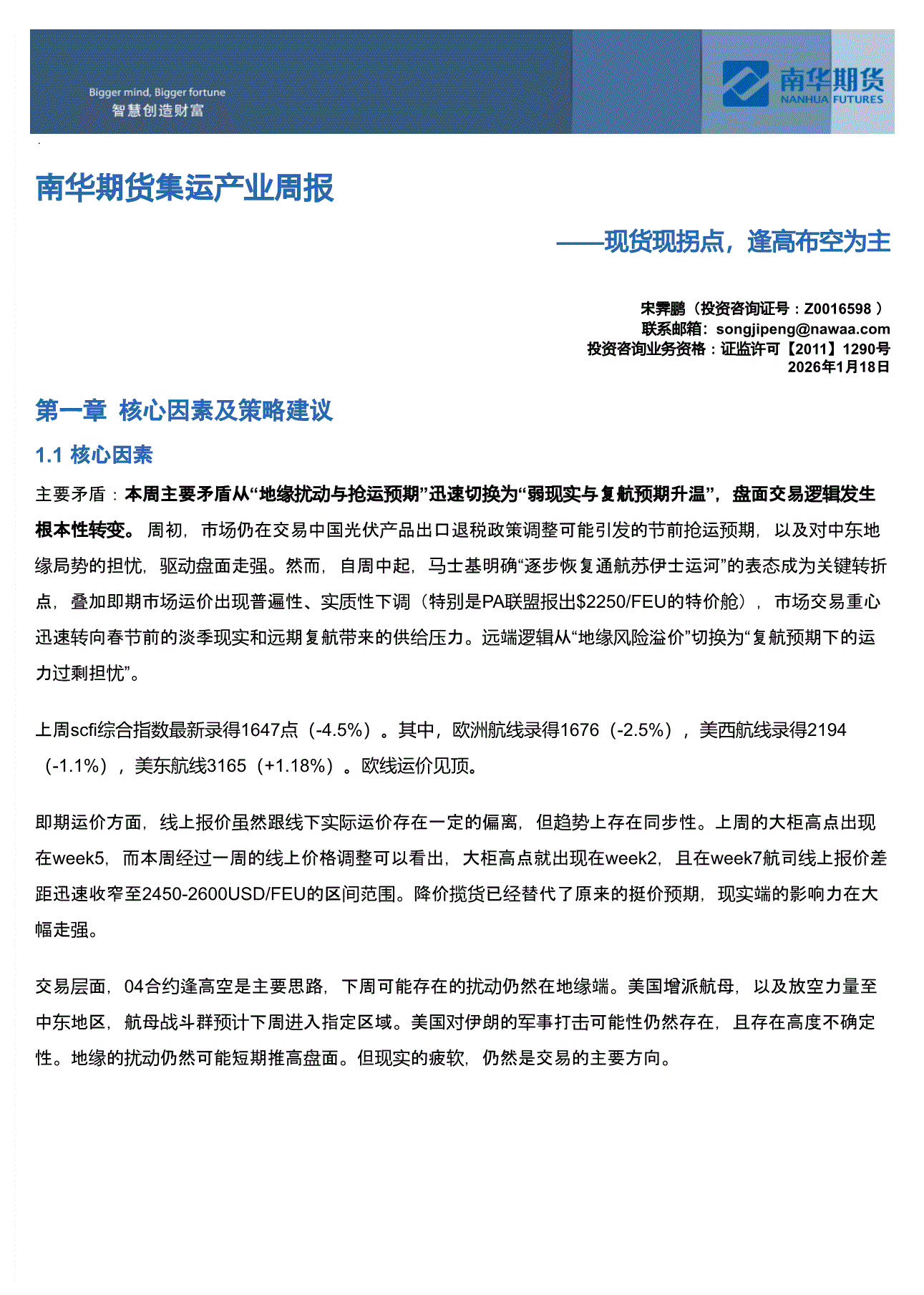 南华期货-集运产业周报:现货现拐点,逢高布空为主-260118