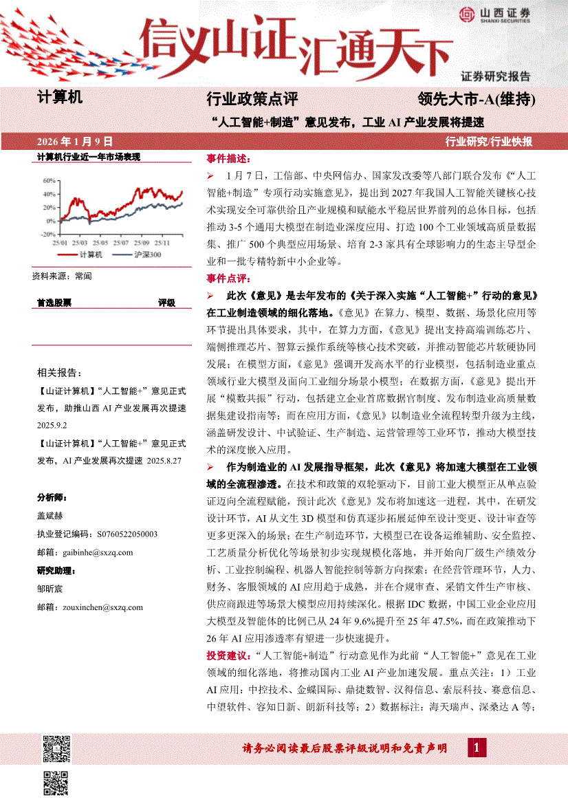 计算机行业:山西证券-计算机行业政策点评:“人工智能+制造”意见发布,工业AI产业发展将提速-260109