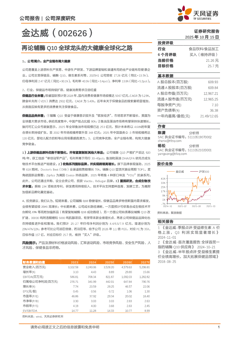 天风证券-金达威-002626-再论辅酶Q10全球龙头的大健康全球化之路-251015