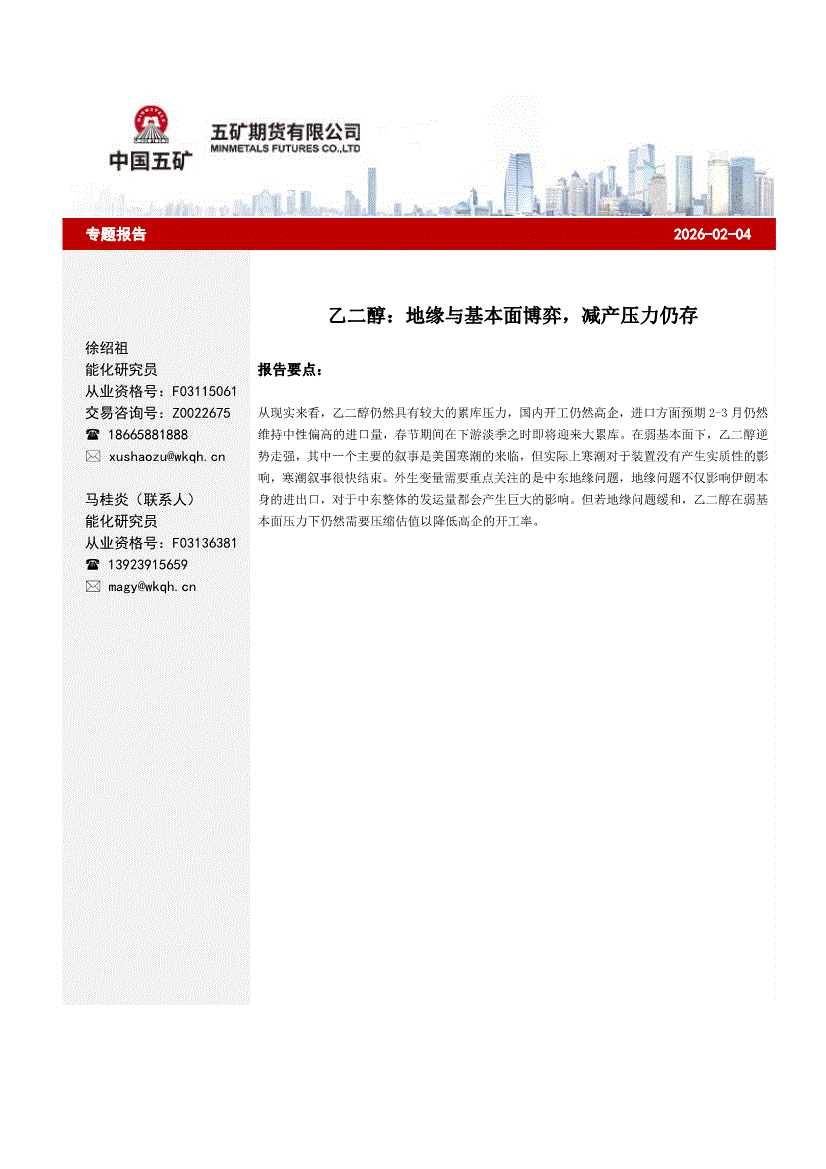 五矿期货-乙二醇专题报告:地缘与基本面博弈,减产压力仍存-260204