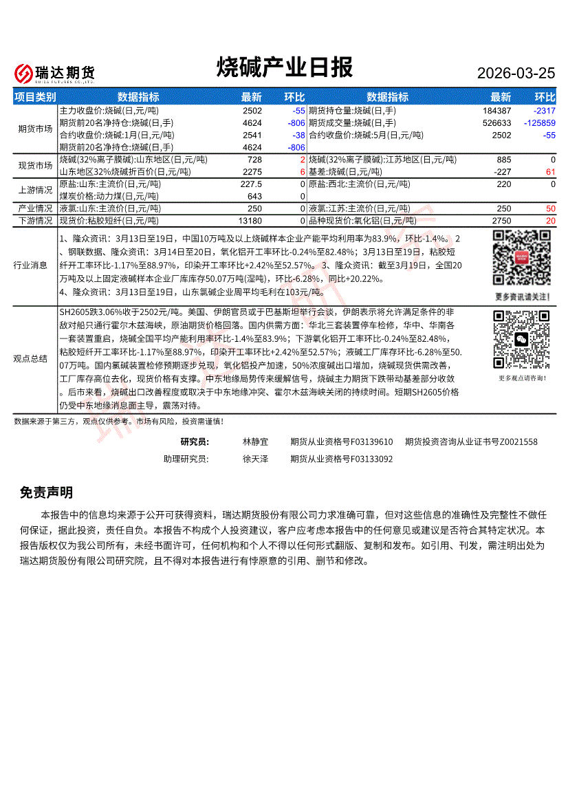 瑞达期货-烧碱产业日报-260325