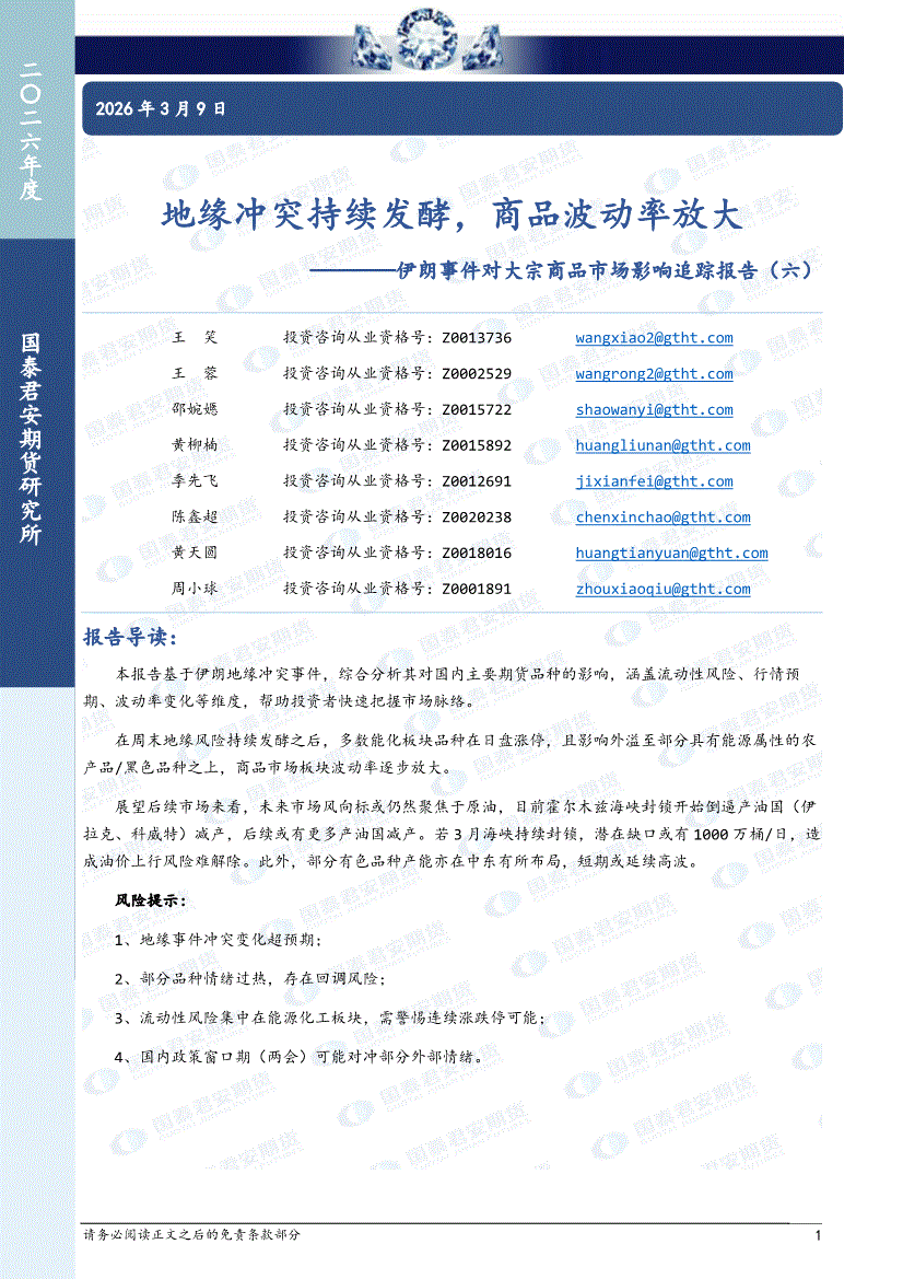 国泰君安期货-伊朗事件对大宗商品市场影响追踪报告(六):地缘冲突持续发酵,商品波动率放大-260309