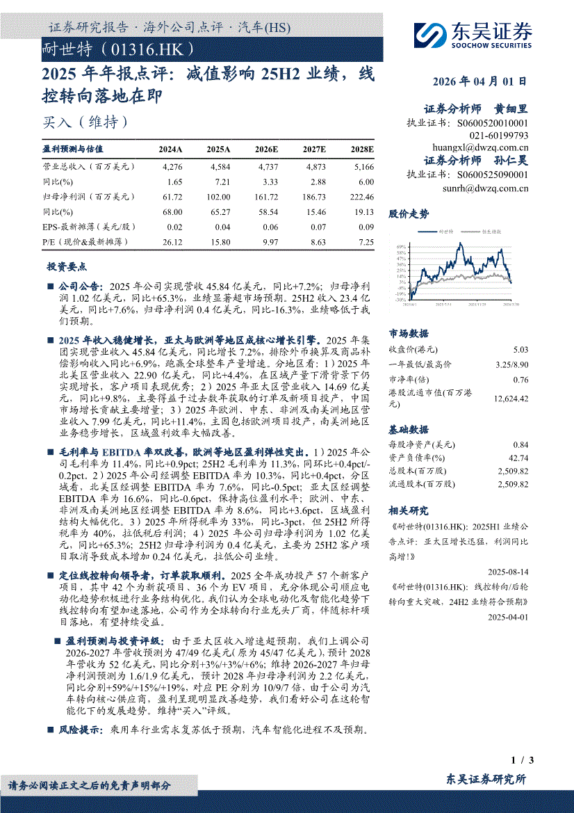耐世特:东吴证券-耐世特-1316.HK-2025年年报点评:减值影响25H2业绩,线控转向落地在即-260401