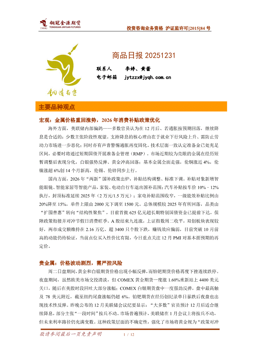 铜冠金源期货-工业硅周报:供需边际转好,工业硅震荡向上-251229