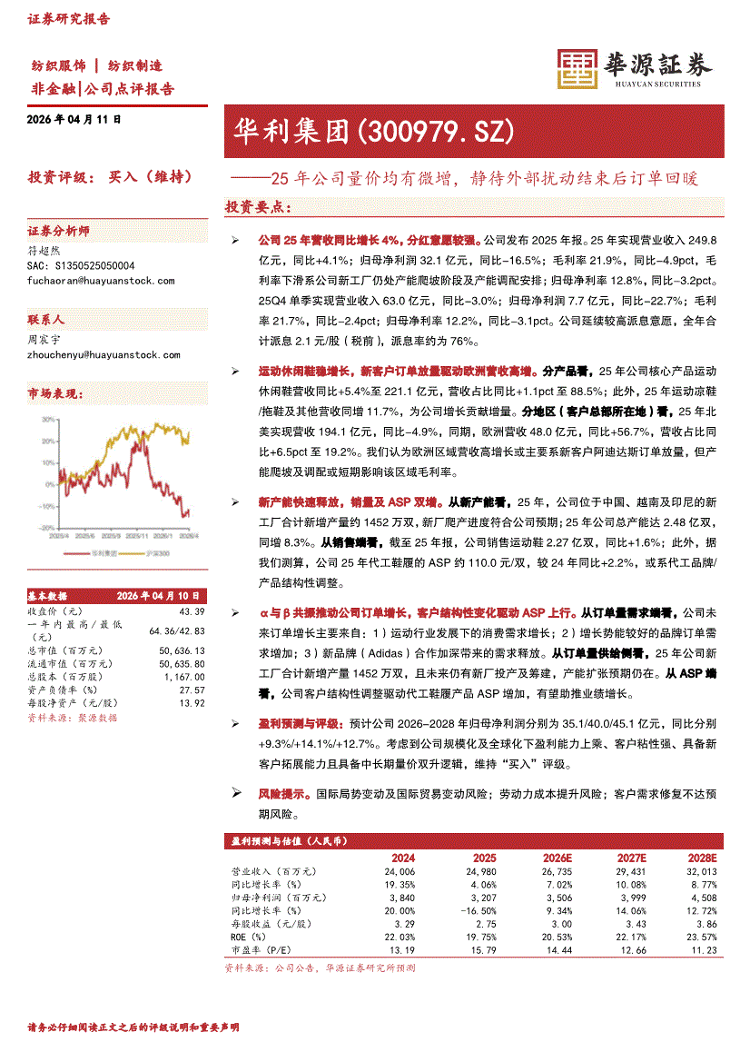华利集团:华源证券-华利集团-300979-25年公司量价均有微增,静待外部扰动结束后订单回暖-260411