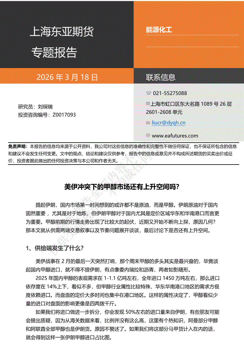 上海东亚期货-能源化工专题报告:美伊冲突下的甲醇市场还有上升空间吗?-260318