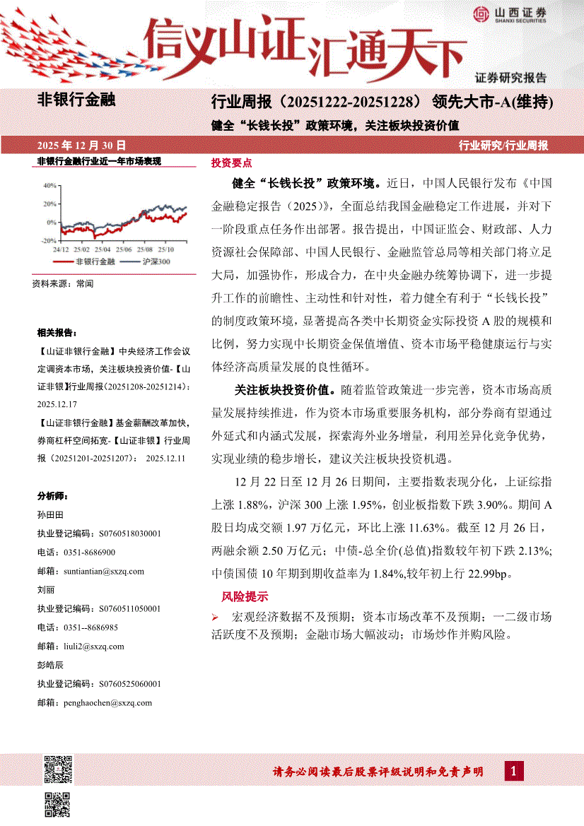 非银行金融行业:山西证券-非银行金融行业周报:健全“长钱长投”政策环境,关注板块投资价值-251230