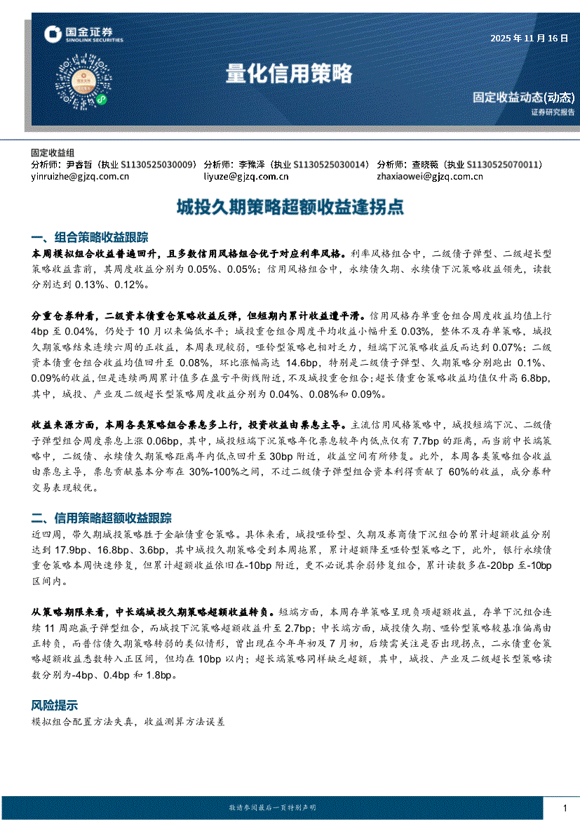 国金证券-量化信用策略:城投久期策略超额收益逢拐点-251116