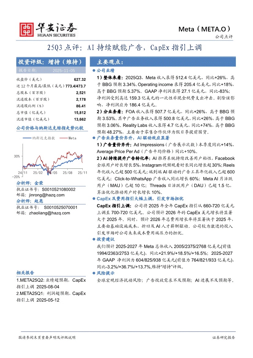 Meta:华安证券-Meta-META.US-25Q3点评:AI持续赋能广告,CapEx指引上调-251105