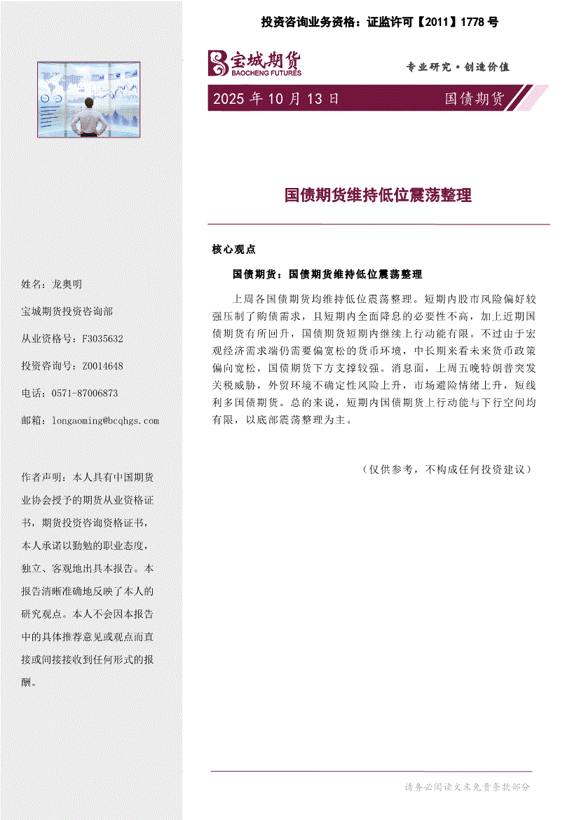 宝城期货-国债期货周报:国债期货维持低位震荡整理-251013