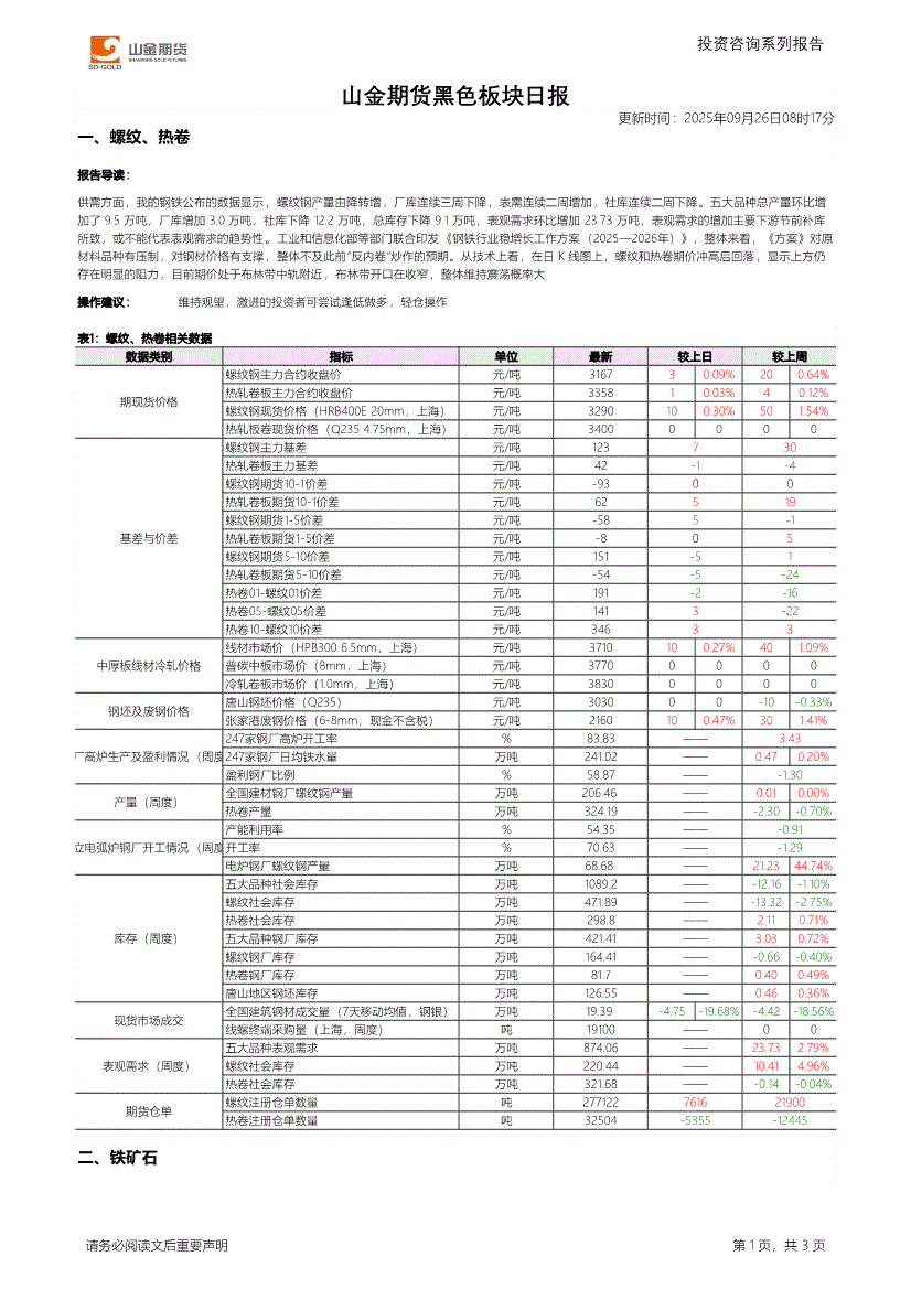 山金期货-螺纹热卷2025年四季报:当前供需同步转弱压力仍在,期价中期仍有望探底回升-251014