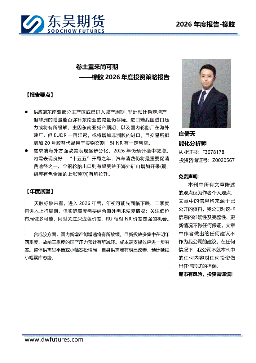 东吴期货-橡胶2026年度投资策略报告:卷土重来尚可期-260107