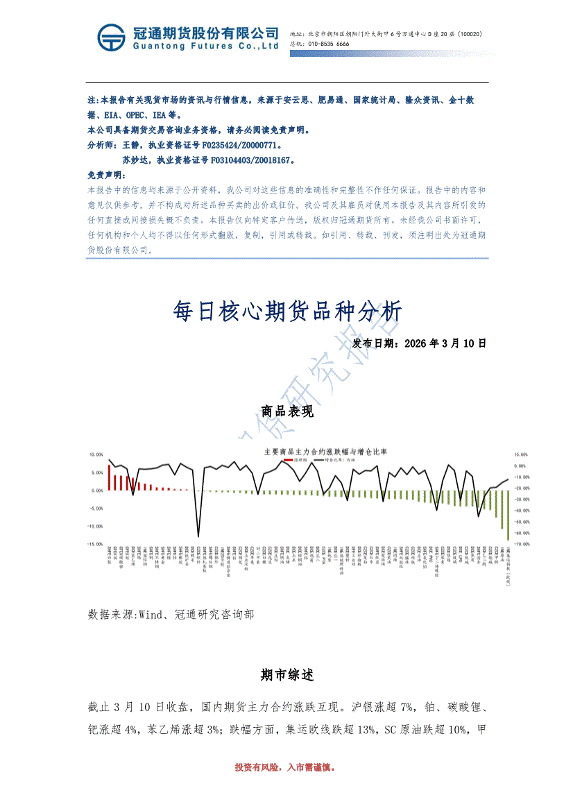 冠通期货-每日核心期货品种分析-260310