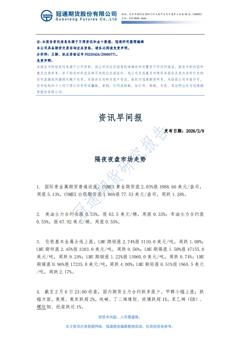 冠通期货-沪铜日报:情绪回暖,年前企稳-260210