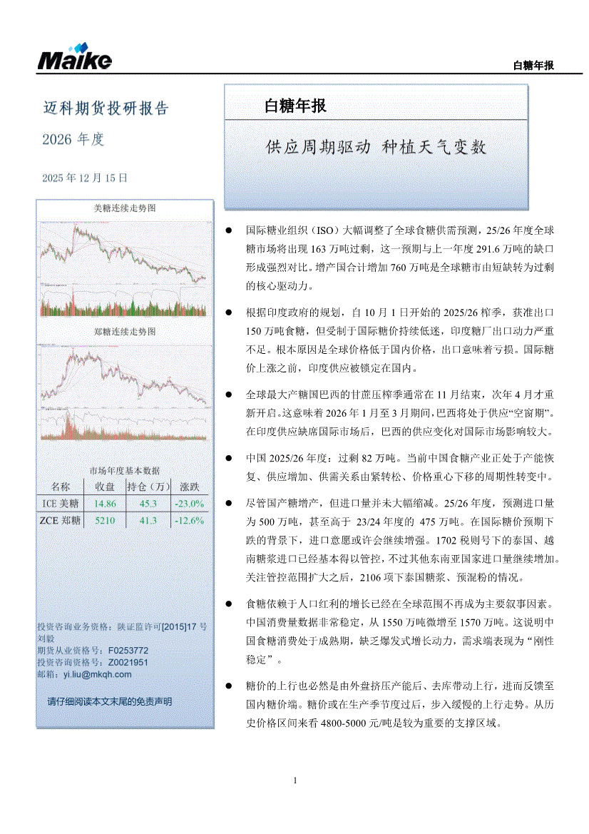 迈科期货-白糖年报:供应周期驱动,种植天气变数-251215