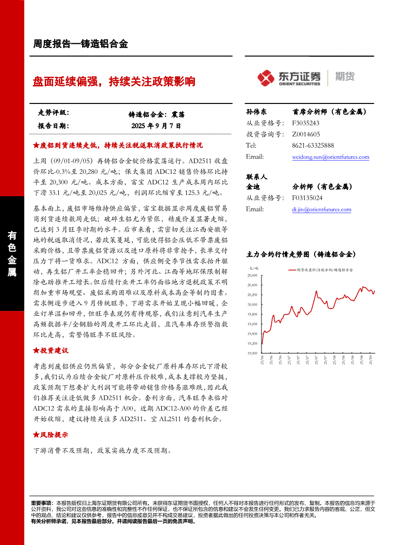 东证期货-周度报告—铸造铝合金:盘面延续偏强,持续关注政策影响-250907