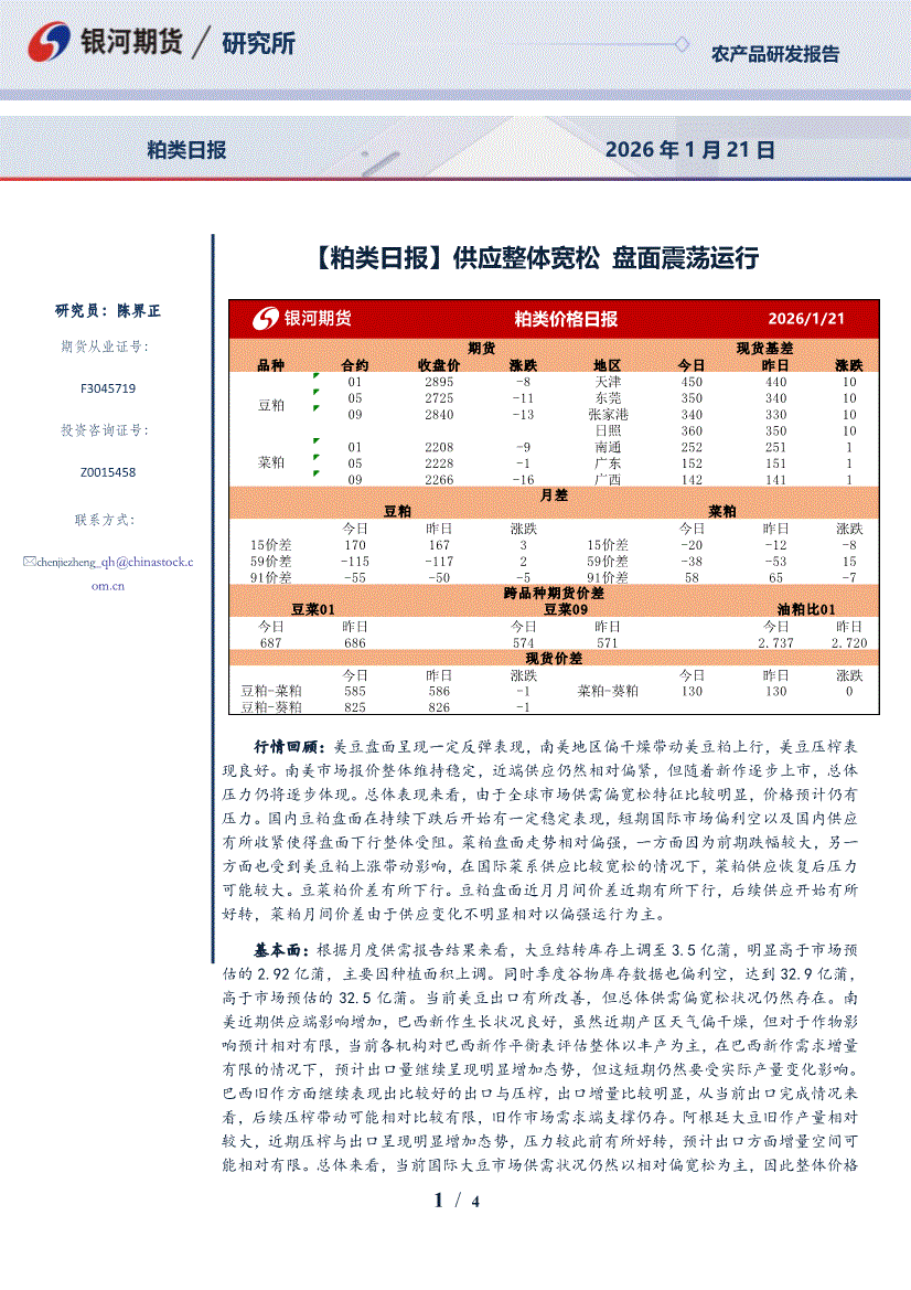 银河期货-粕类日报:供应整体宽松,盘面震荡运行-260121